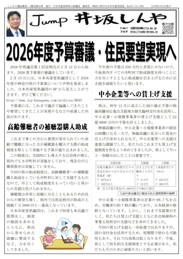 今号では、現在審議中の2026年度の神奈川県の予算に関する県議団としての見解をまとめてお知らせしています。